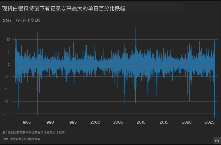 在其他贵金属方面,现货白银在触及77.72美元的低点后,最终下跌27.7%,报每盎司83.99美元。根据伦敦证券交易所集团自1982年以来的数据,白银正处于有记录以来表现最糟糕的一天。