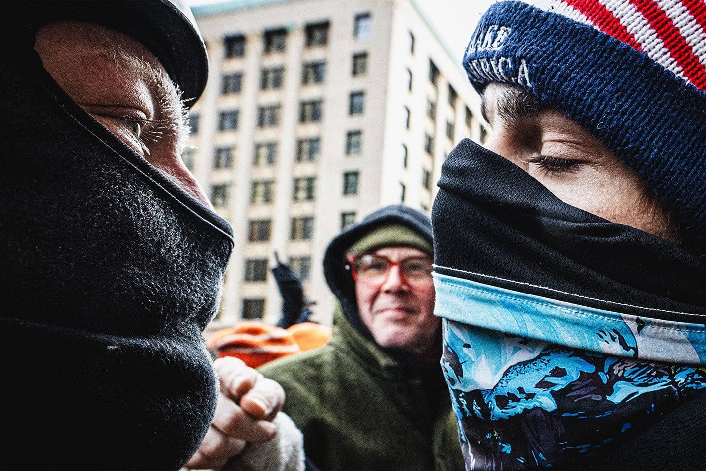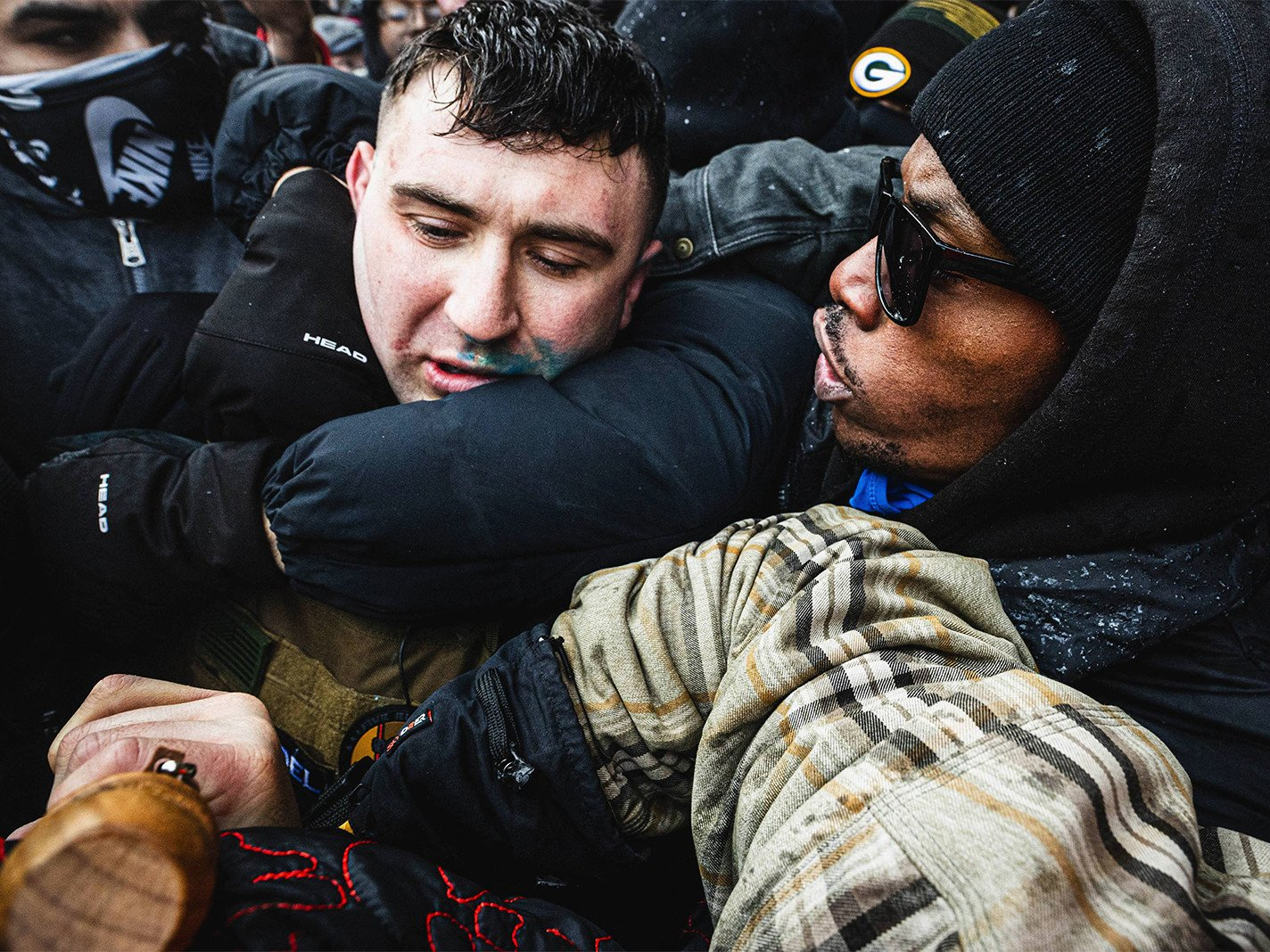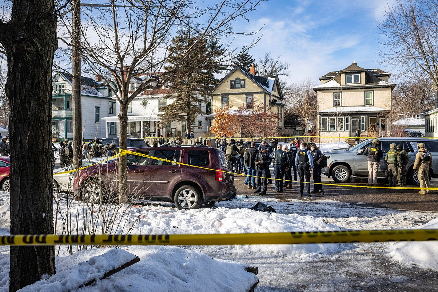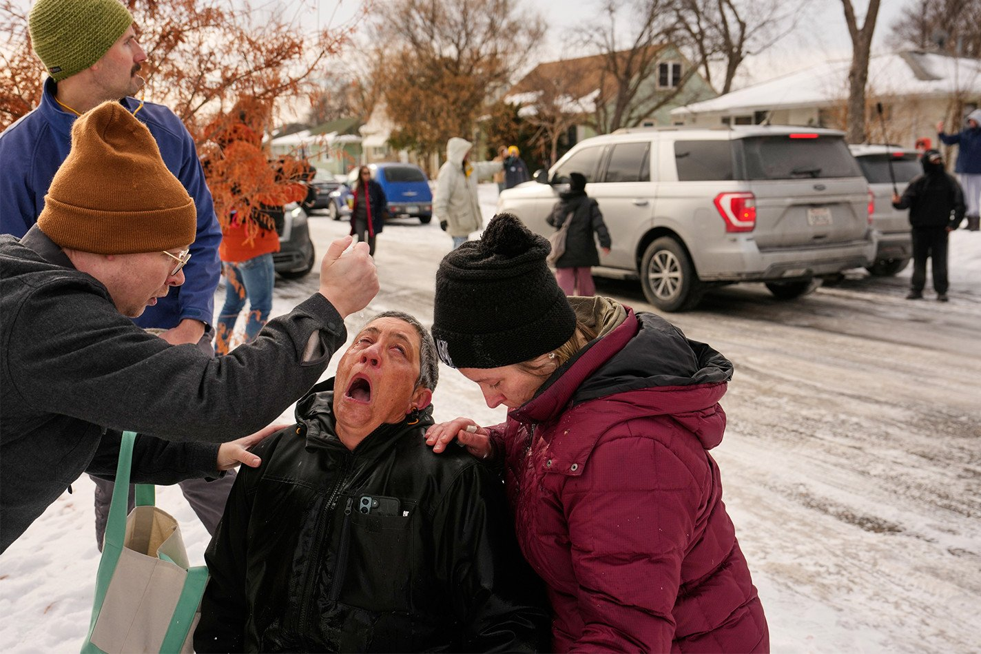 这场集会被反对ICE的抗议者包围,他们向兰的支持者投掷雪球和水球。在附近的圣保罗,涉嫌证件不全的居民被从车内带走。