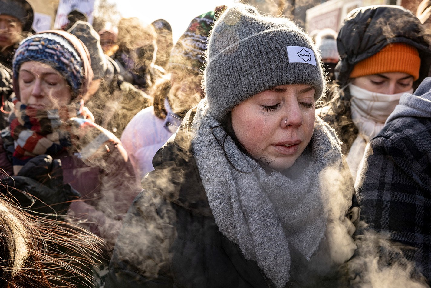 哀悼者聚集在为普雷蒂搭建的临时纪念碑周围。尽管气温降至零下,仍有数千名当地人聚集在一起,抗议“大都会突击行动”。