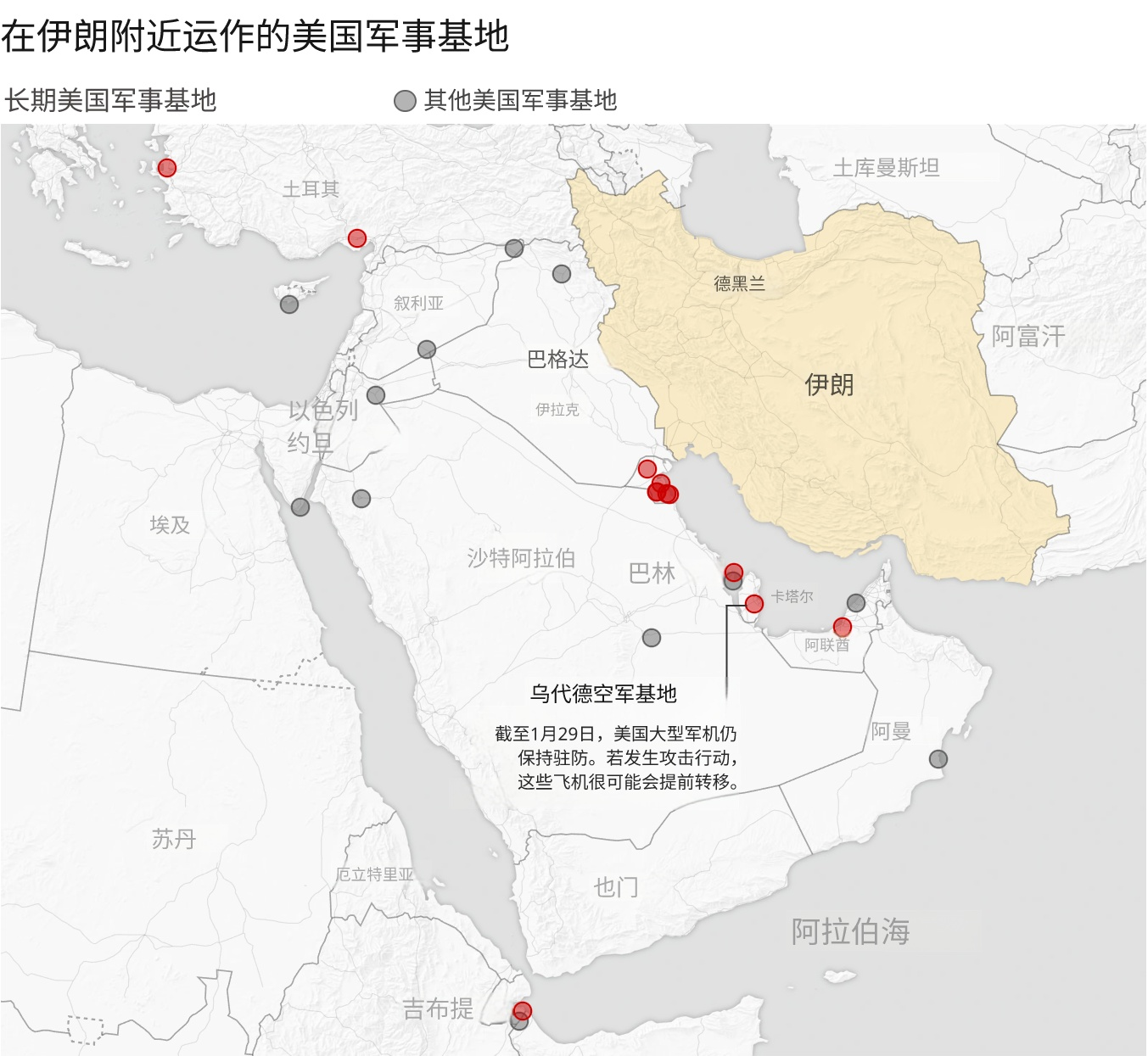 飞行跟踪数据进一步显示,美国正将包括更先进的战斗机和加油机在内的更多军机调往该地区或周边地带。此外,五角大楼已向当地增派了“爱国者”和“萨德”防空系统,以防范伊朗中短程导弹可能发起的报复性袭击。目前,美军在该地区驻扎有约3万至4万名官兵。