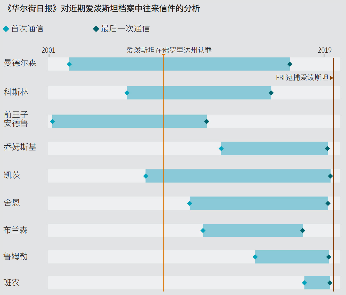 2019年2月,也就是在弗吉尼亚·朱弗雷公开指控其性贩运罪行、各大报纸的深度调查已让爱泼斯坦的丑行无所遁形之后,著名政治活动家、教授诺姆·乔姆斯基还曾给爱泼斯坦发去过信息。