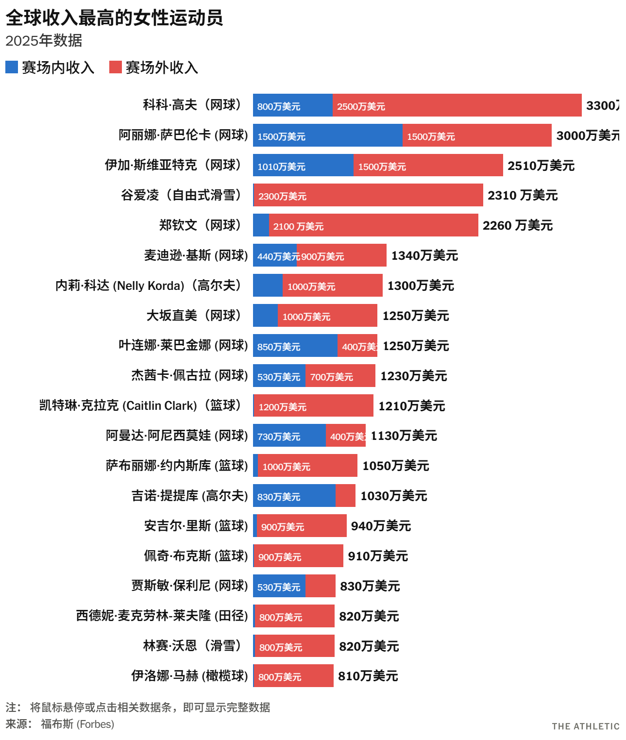 在福布斯公布的“2025年全球收入最高女运动员”榜单中,出现了一个异类。